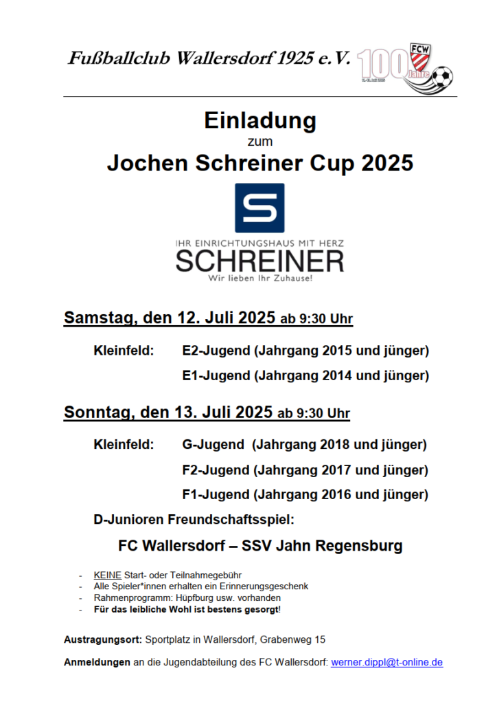 🎉 SAISONSTART HEUTE! 🎉Die Sommerpause ist vorbei – der Ball rollt wieder!Heute empfängt unser FC Wallersdorf den SV Großköllnbach zum 1. Spieltag der Kreisklasse Dingolfing! 💪⚽️📍 Sportplatz Wallersdorf⏰ Anstoß: 14 bzw. 16 Uhr.Und weil eine Saison so viel besser schmeckt als nur ein einzelnes Spiel, haben wir was für euch vorbereitet:🎟️ Die neue FCW-Jahreskarte!✔️ Für alle Heimspiele✔️ Für alle Emotionen✔️ Für alle, die eh jedes Mal da sind💰 40 Euro normal | 35 Euro ermäßigtOder wie wir sagen: Eine Investition in Bierlaune, Würstlsemmel und Ballgefühl. 😄👉 Holt euch eure Dauerkarte direkt am Eingang – oder fragt jemanden mit wichtiger Miene. Die wissen Bescheid. 😉#fcw100#saisonstart#heimspieltag#kreisklasseknaller#jahreskarte2025... Mehr sehenWeniger sehen
